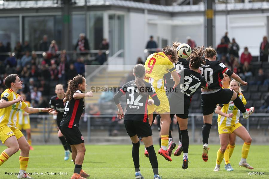 Frankfurt am Main (Deutschland) — Zita Rurack (#9, 1. FC Union Berlin), Elena Mühlemann (#34, Eintracht Frankfurt II), Tessa Zimmermann (#20, Eintracht Frankfurt II) [Foto: sportfotografie.de / Julien Christ, - info@sportfotografie.de - www.sportfotografie.de - Die Veröffentlichung ist nur mit Urheberkennzeichnung gegen Honorar gestattet; Belegexemplar erbeten *** Lieferung erfolgt ausschließlich unter Anerkennung der AGB, einzusehen unter https://sportfotografie.de/agb *** Foto nur für redaktionelle Verwendung freigegeben - kein Model-Release / no model release!] (Foto von sportfotografie.de / Julien Christ). Weitere Verwendungsmöglichkeiten auf Anfrage. Bilder die für kommerzielle Zwecke lizenzierbar sind, werden im "Herunterladen"-Dialog auch als solches gekennzeichnet. Bei Fragen zur Lizenzierung und Bildverwendungsmöglichkeiten helfe ich dir gerne weiter. Sende mir Bitte eine Anfrage per E-Mail.