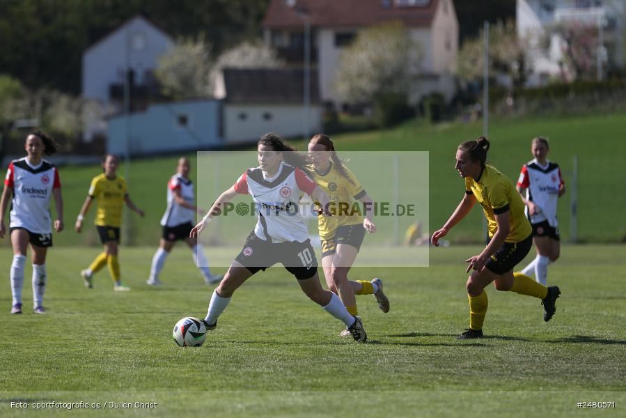 Sachsen bei Ansbach (Deutschland) — Solveig Schlitter (#25, SV 67 Weinberg), Georgia Stanti (#10, Eintracht Frankfurt II), Anna Grimm (#2, SV 67 Weinberg) [Foto: sportfotografie.de / Julien Christ, - info@sportfotografie.de - www.sportfotografie.de - Die Veröffentlichung ist nur mit Urheberkennzeichnung gegen Honorar gestattet; Belegexemplar erbeten *** Lieferung erfolgt ausschließlich unter Anerkennung der AGB, einzusehen unter https://sportfotografie.de/agb *** Foto nur für redaktionelle Verwendung freigegeben - kein Model-Release / no model release!] (Foto von sportfotografie.de / Julien Christ). Weitere Verwendungsmöglichkeiten auf Anfrage. Bilder die für kommerzielle Zwecke lizenzierbar sind, werden im "Herunterladen"-Dialog auch als solches gekennzeichnet. Bei Fragen zur Lizenzierung und Bildverwendungsmöglichkeiten helfe ich dir gerne weiter. Sende mir Bitte eine Anfrage per E-Mail.